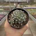 Rosetas bastante densas com folhas obovadas (ápice maior que a base) de cor cinza azulado. Para o cultivo, é necessário um cuidado maior para não deixar a água repousar sobre a planta e, também, bastante luz solar.