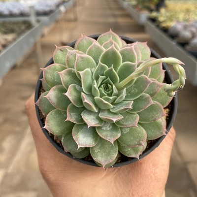 Esta suculenta da família Crassulaceae possui folhas verdes arredondadas com uma protuberância afilada na ponta da folha. Suas folhas centrais são menores e apontam para cima, porém as mais afastadas do centro acabam ficando menos inclinadas. Sua flor é amarela.