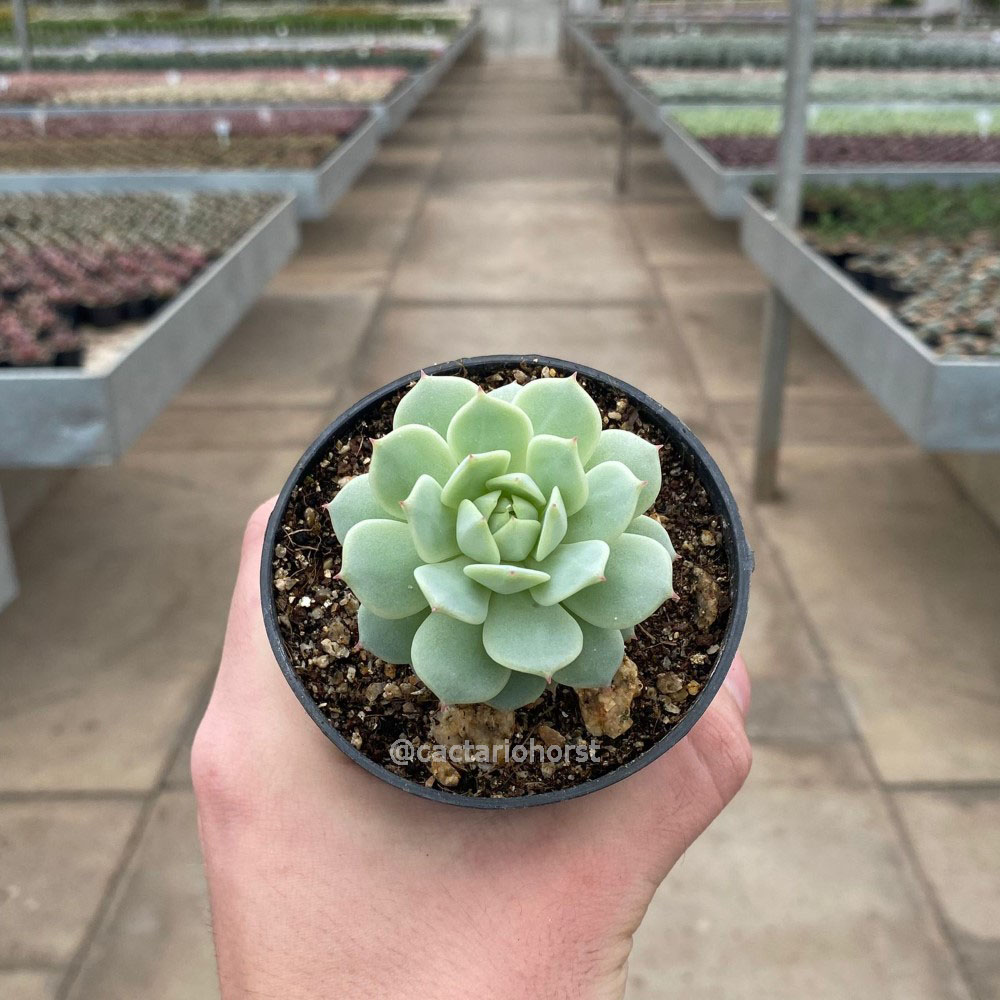 É uma suculenta perene que atinge até 10 cm de altura e 9 cm de diâmetro. Suas folhas são carnudas, arredondadas e de tons verde claro com branco fosco, suas pontas são pontiagudas e vermelhas. No final do inverno, envia pendões com flores amarelas e pontas vermelhas, semelhantes à própria suculenta.