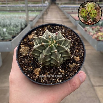 Cacto globular de cor verde-escura e tons marrons, nativo da Argentina. Possui alguns espinhos radiais em cada aréola e nenhum espinho central. Os espinhos são escuros e curtos. Entre os tubérculos há uma grande protuberância que chama a atenção por ser algo único desta espécie. Suas flores são verdes e saem de aréolas geralmente presentes na coroa do cacto.
