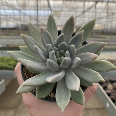 Esta suculenta da família Crassulaceae cria uma roseta que chega até 15 cm de diâmetro e 20cm de altura. Suas folhas são prata-róseas e crescem apontndo para cima. Suas folhas são finas, compridas e grossas. Seus pendões florais produzem flores laranjas.