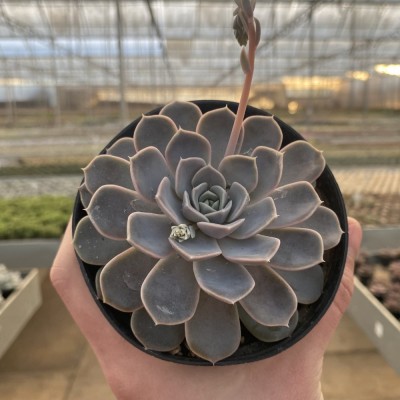 Pertence a família Crassulaceae. Suas rosetas são densas e compactas na parte superior. As folhas tem tom esverdeado, são carnudas e arqueadas em direção ao centro da planta. Flores surgem junto a finas hastes diretamente do caule.