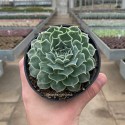 De fácil cultivo, essa Echeveria apresenta rosetas muito densas com folhas pequenas e triangulares de cor verde-acinzentado.