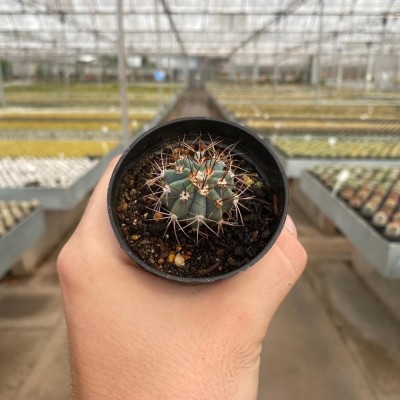 Cacto de forma globular com tonalidade verde-azulada. Têm costelas bastante expressas com espinhos pretos dispostos sobre elas. É originário da Bahia e apresenta flores rosas durante a primavera.