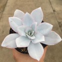 Esta é uma linda Echeveria com rosetas solitárias, podendo atingir até 30 cm de diâmetro e até 45 cm de altura. Suas folhas são verde-azuladas com finas bordas vermelhas, cobertas por um revestimento espesso e esbranquiçado. No verão é coroada com flores amarelas.