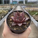 Esta exuberante Echeveria tem folhas largas com um ápice pontiagudo e uma cor forte avermelhada que se dispõem em rosetas compactas geralmente solitárias.