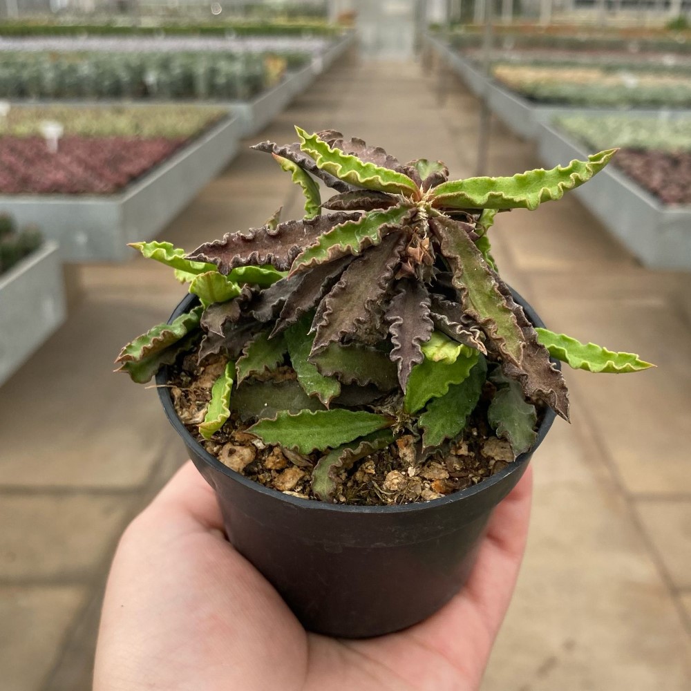É uma pequena suculenta em forma de arbusto. O seu caule é irregular e dispõe de folhas extremamente onduladas no ápice.
