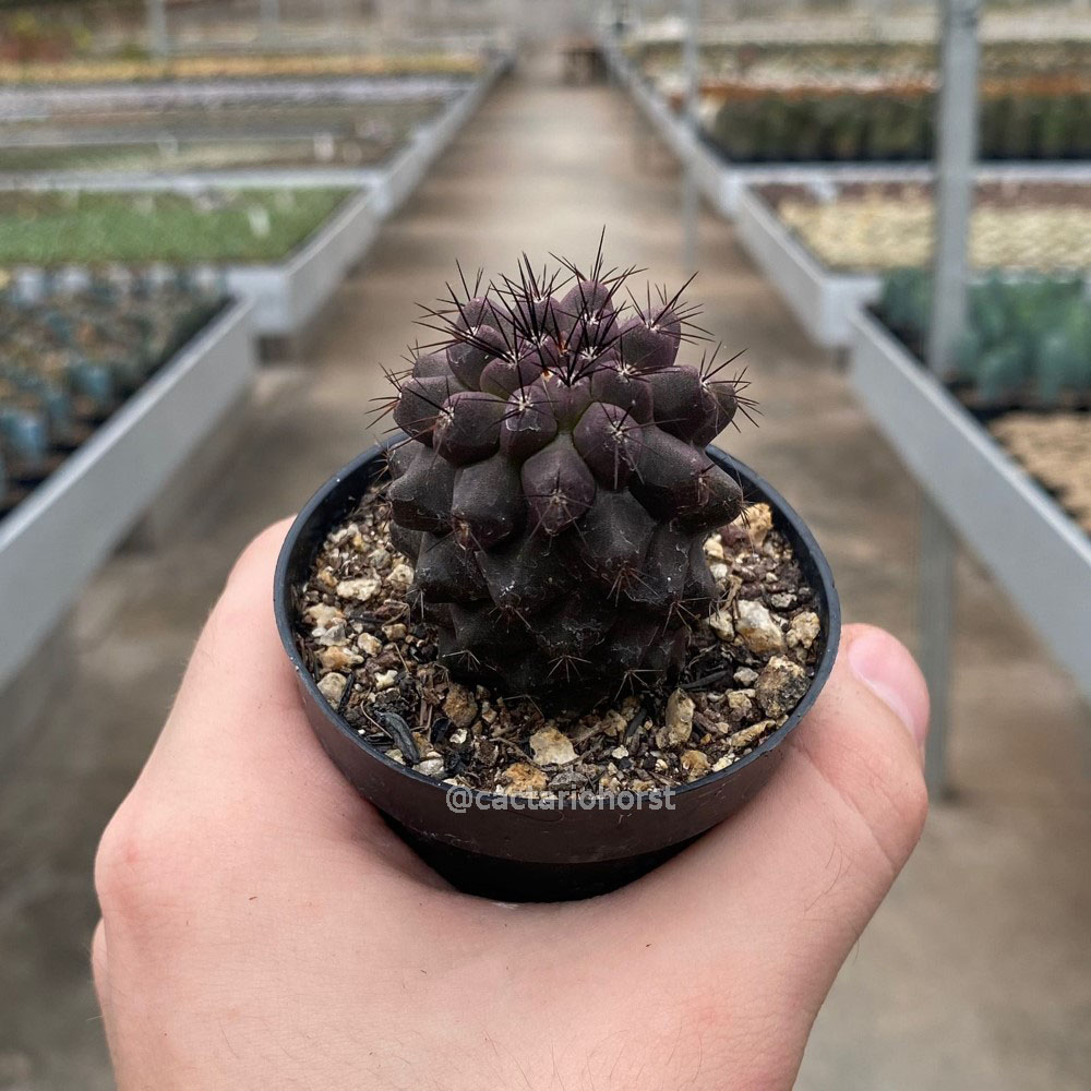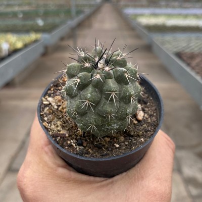 Possui espinhos radiais pretos dispostos através de suas aréolas. Suas flores aparecem no ápice da planta e são de cor amarela.