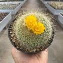 Cacto globular com depressão no ápice, de cor verde. Produz cerca de 30 a 40 espinhos de dourado a branco, com pontas levemente avermelhadas, por aréola. Os espinhos das aréolas da coroa ficam amarelados com maior frequência, fazendo com que muitas vezes o corpo fique com espinhos brancos e o ápice amarelado. Produz flores amarelas que saem da coroa.