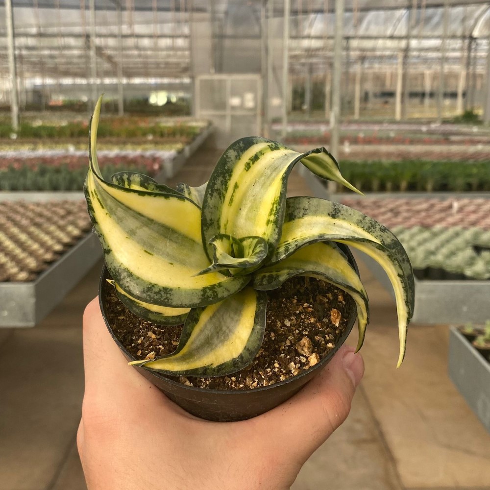 Semelhante a Sansevieria trifasciata, ela também tem faixas verdes e amarelas paralelas e verticais em suas folhas, que, por sua vez, são torcidas para diversos lados.