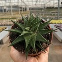 As folhas são triangulares e ligeiramente côncavas. Geralmente de cor verde escura com tubérculos transversais verde claro e margens de mesma cor. As flores são brancas e se dispõem em hastes que surgem do centro da planta.