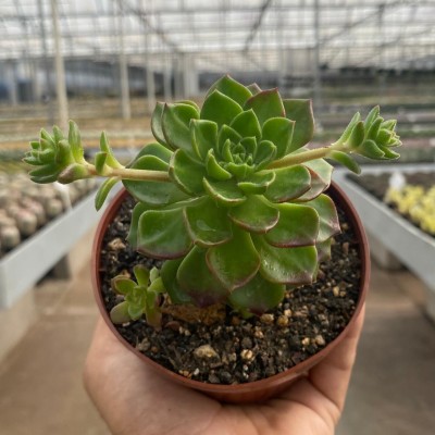 Esta é uma suculenta que chega a 20cm de altura. Ela possui um longo caule com curtas folhas verdes. Ela tem facilidade de produzir aglomerados de ramos. Seus pendões florais possuem flores brancas.