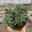 É uma suculenta em formato de arbusto que atinge até 30 cm de altura. As folhas são curvadas para cima, de cor majoritariamente verde prateada com ápices arredondados e avermelhados. São cilíndricas e sem margens formadas. Suas flores estreladas de tom amarelo costumam brotar durante o verão.