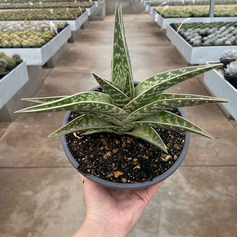 É uma suculenta pequena e de crescimento demorado. Suas folhas carnudas são triangulares de cor verde ou marrom, com manchas transversais a própria folha de cor branca, assim como as margens.