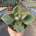 As folhas largas de tonalidade amarronzada com o ápice mais escuro apresentam uma fina camada de pelos por toda sua superfície superior, já na superfície inferior e margens manifesta algumas protuberâncias.